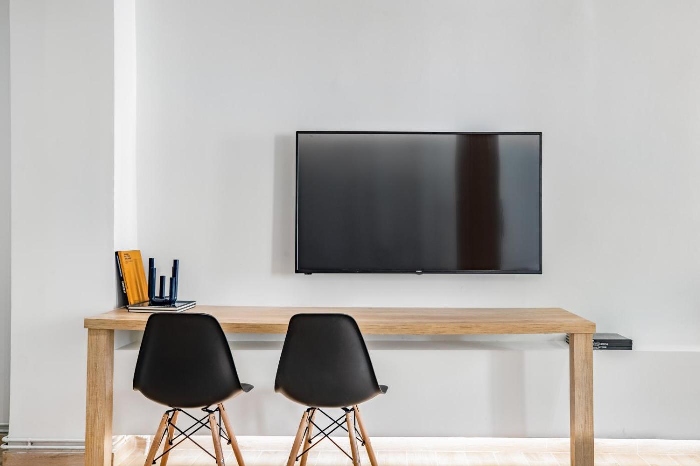 One-Bedroom Apartment. This air-conditioned apartment features 1 living room, 1 separate bedroom and 1 bathroom with a hairdryer. The apartments kitchen is available for cooking and storing food. This apartment has a washing machine, heating and a flat-screen TV. The unit has 2 beds.