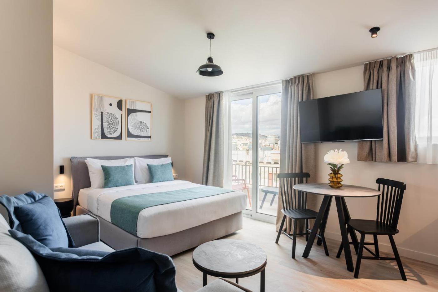 Studio with Terrace. The well-equipped kitchenette has a stovetop, a tea and coffee maker and a toaster. The studio features air conditioning, a washing machine, a terrace with city views as well as a private bathroom boasting a shower. The unit has 1 bed.