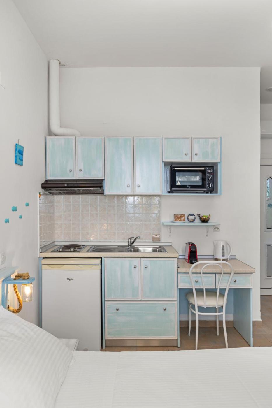 Standard Double Room. Guests can make meals in the kitchenette that features a stovetop, a refrigerator, kitchenware and an oven. This air-conditioned double room is comprised of a flat-screen TV with streaming services, a private bathroom as well as a terrace with sea views. The unit has 1 bed. ;