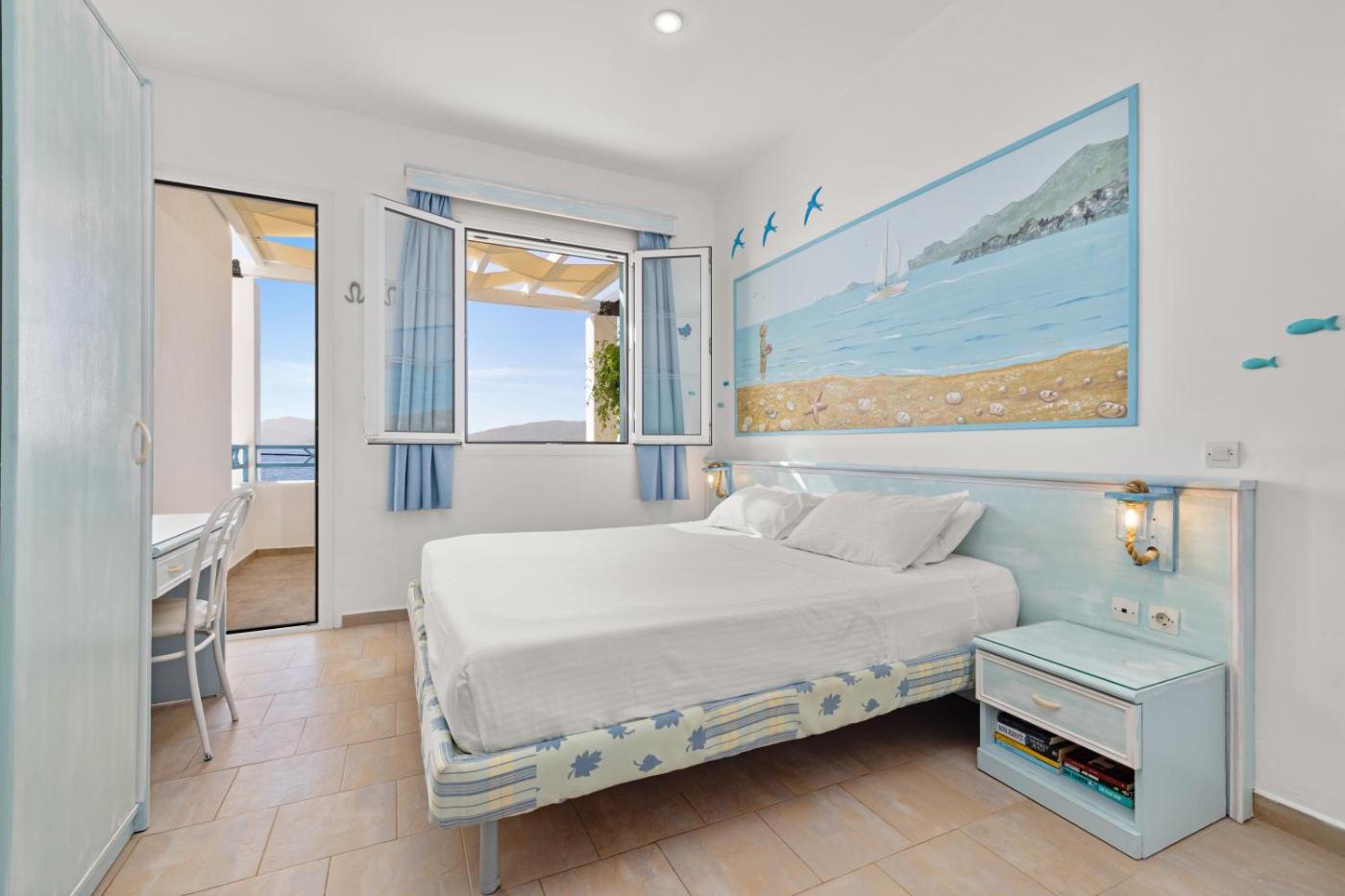 Superior Double or Twin Room with Sea View. Meals can be prepared in the well-fitted kitchenette, which features a stovetop, a refrigerator, kitchenware and an oven. This air-conditioned twindouble room is comprised of a flat-screen TV with streaming services, a private bathroom as well as a terrace with sea views. The unit has 1 bed. ;