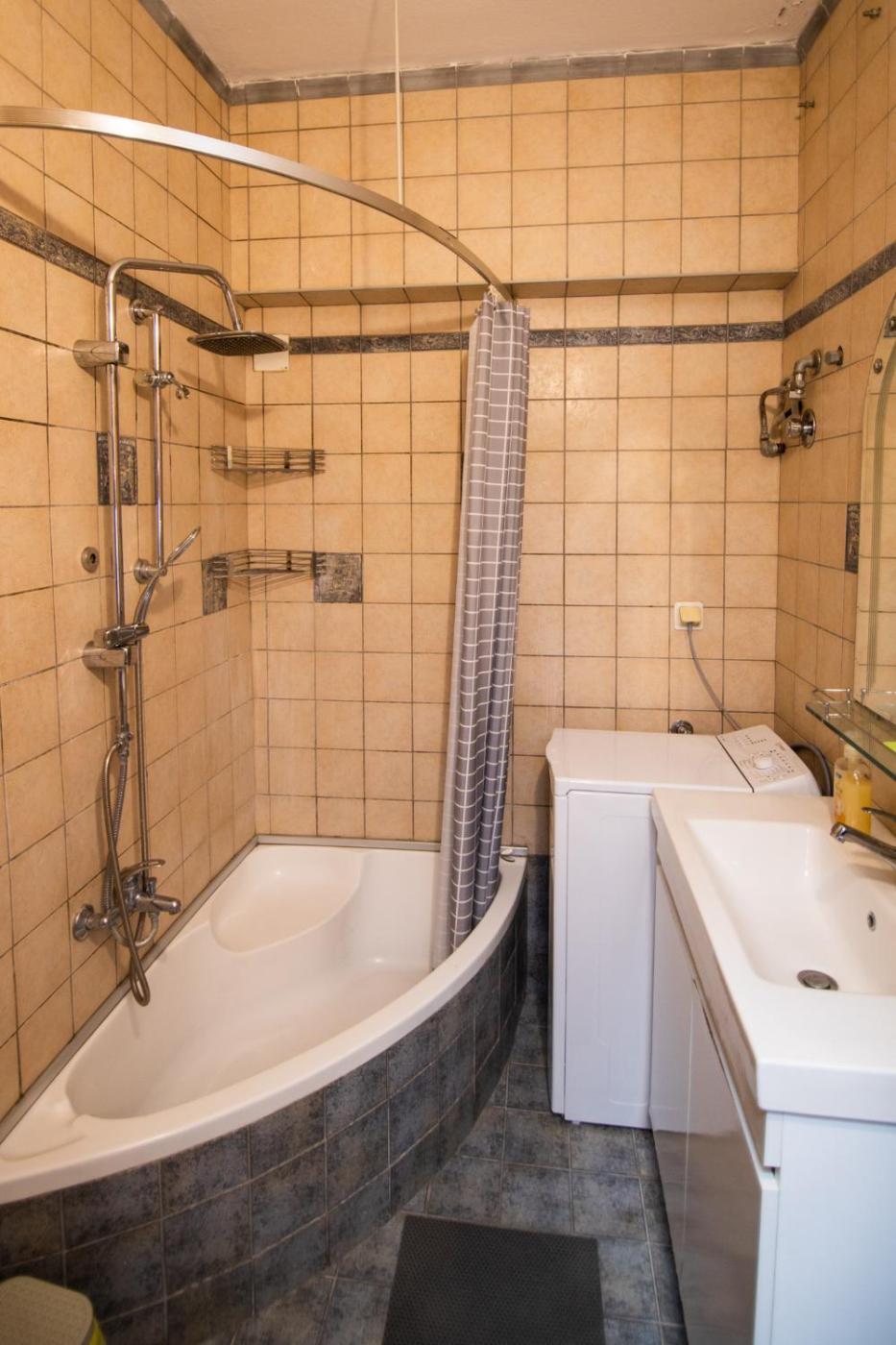 One-Bedroom Apartment. Boasting a private entrance, this air-conditioned apartment features 1 living room, 1 separate bedroom and 1 bathroom with a walk-in shower and a bath. The well-equipped kitchen features a stovetop, a refrigerator, kitchenware and an oven. The unit has a washing machine, city views, a terrace and winechampagne is offered for guests. The unit has 2 beds.