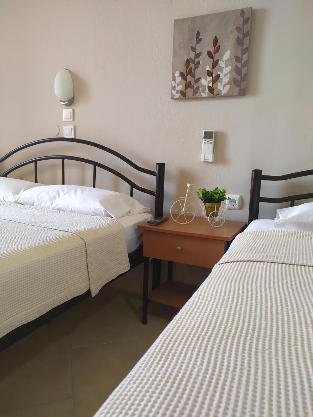 Standard Triple Room. In the well-fitted kitchenette, guests will find a stovetop, a refrigerator, kitchenware and an electric kettle. The triple room features air conditioning, a wardrobe, a balcony with garden views as well as a private bathroom boasting a shower. The unit has 2 beds. ;